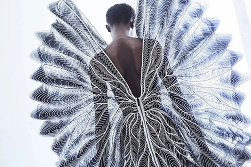 Chíe:将2D转化为3D,需要进行一系列的实验,这个过程是具备挑战性的。但只要保持严谨的态度,掌握好立裁方法,随时调整设计中的比例关系,图像就能变成好的实物。