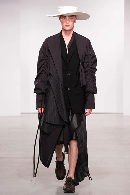 殷老师:Herck在创作的过程中我们是不断的在产生共鸣,而他也是那种就应该成为设计师的一类人,因为他有着设计师的那份坚持和付出。整个过程中不论是系列里面的装置,到面料的尝试,甚至是戈多系列的服装形态的尝试,每一次都是一个在作品集创作中的高难度挑战,但是他就是从来都没有放弃过,一旦这个设计想法坚定,就算是可能需要尝试很多次,需要去做很多的努力,他都没有放弃过,反而在那股子坚持和笃定中每一次都以一个很好的结果实现了它。