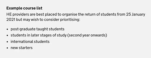 英国政府规定所有高等教育机构在学生返校后都应该: