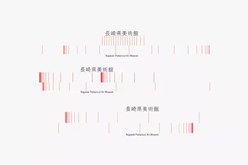 美术馆入口标志和设计,利用百叶窗制造出三维的波纹效果