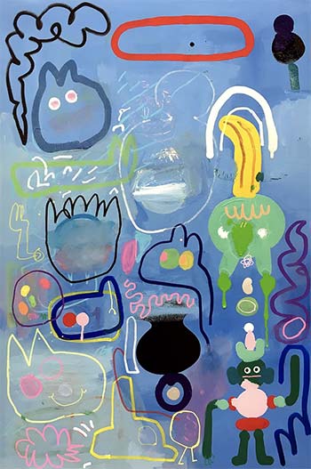 他的作品被置于美术、城市艺术和流行文化之间,用幽默来质疑他所处的当代环境。他的美学是一种无处不在的、即刻被认可的美学,存在于多种形式中。