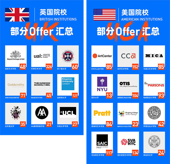OFFER OVERVIEW英美21所金字塔艺术院校捷报频传