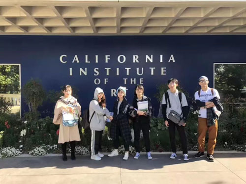 上午,深度探访加州艺术学院 CalArts,→(加州艺术学院(California Institute of the Arts)是美国一所顶尖的艺术学院,坐落在美国加利福尼亚州洛杉矶县的巴伦西亚,成立于1961年,是美国第一个专门为视觉和表演艺术学生授予正式学位的高等院校。在美术、视觉、表演方面由西方学校和学院协会认可授权授予学士、硕士学位,以及截至1994年的文学艺术学位。)参观学生作品陈列室,走访角色动画、电影制作、摄影与媒体等多个专业工作室;