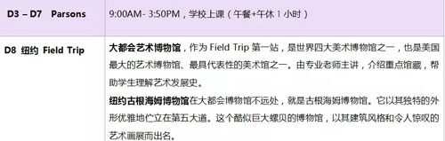 ◇ 丰富的课余活动: 周末由ACG安排丰富课余活动,邀约 parsons在读学生互动,劳逸结合。