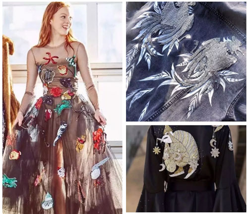 1.手工钉珠钉钻:手工钉珠订钻在成衣中常有出现,起到装饰作用。